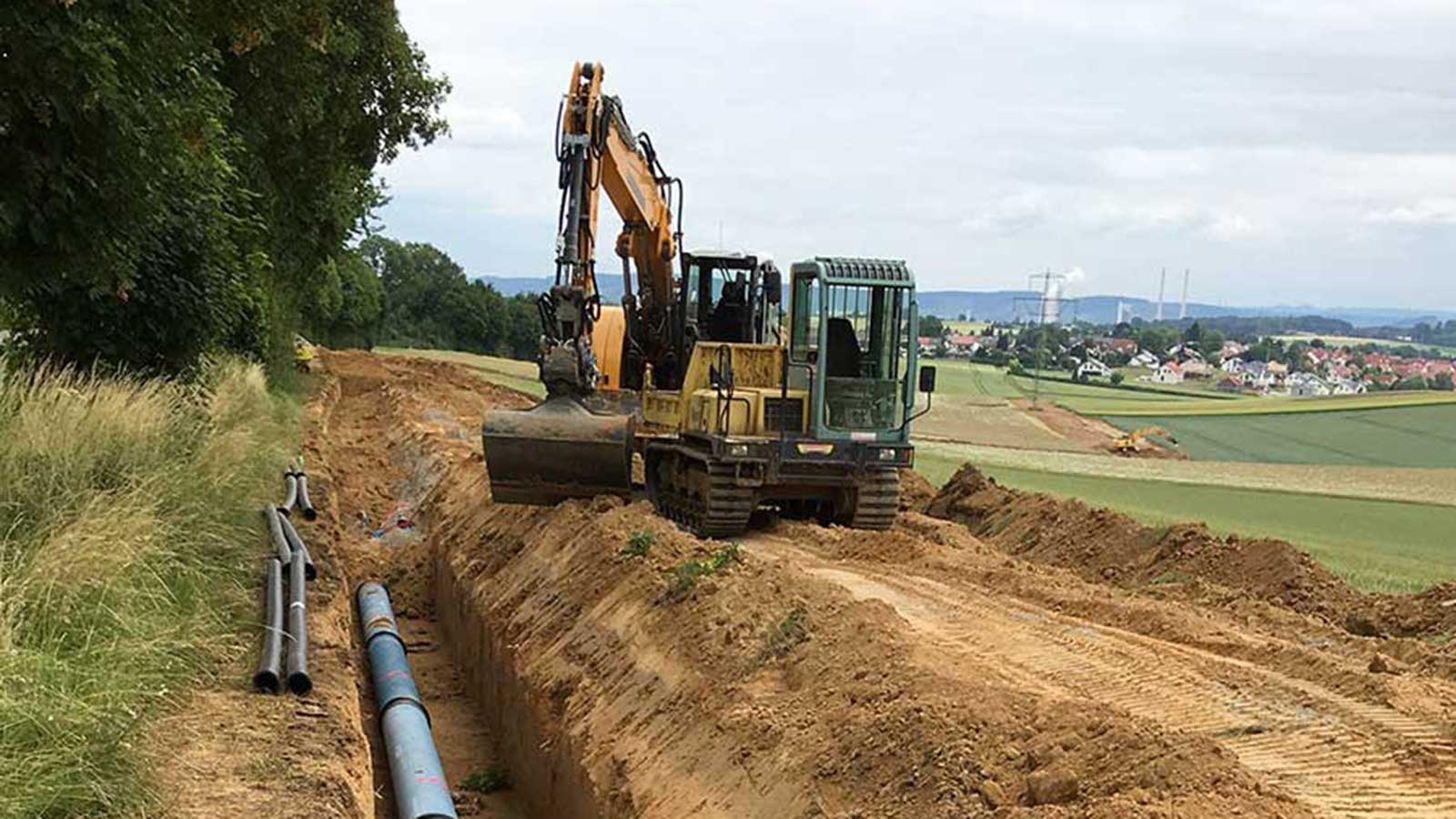 Querungen der B 39 sowie der Gartachgau-Landstraße südlich von Kirchhausen in Form einer Pressung und unter dem Rotbach haben wir die Leitung im Spülbohrverfahren verlegt“,