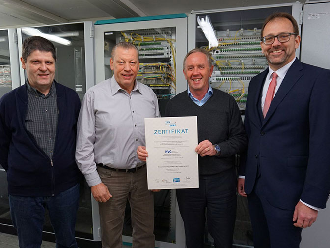 Von rechts: HVG-Geschäftsführer Frank Schupp und das Projektteam für das Informations-Sicherheitsmanagement-System der HVG Horst Alber, Klaus Vollmer und Rudolf Sinn.