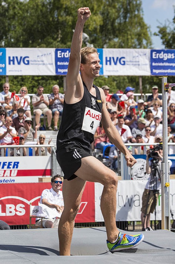 Einen Wettbewerb auf Weltklasse-Niveau haben die Zuschauer am 17. Juli bei bestem Sommerwetter in der Eberfürst-Arena erleben dürfen. Insgesamt gab es neun Sprünge über 2,30 Meter. Würden die Olympischen Spiele nicht vor der Türe stehen, wären es vielleicht noch ein paar mehr geworden. So verzichteten die Sportler aber auf unnötige Versuche - weniger interessant machte das das Springen aber nicht. Vor allem am Ende war das Duell um den Titel an Hochspannung kaum zu überbieten. Der Deutsche Eike Onnen, der Kanadier Derek Drouin sowie der zweitbeste Hochspringer aller Zeiten, Muatz Essa Barshim aus Katar, schraubten die Latte immer weiter nach oben. Am Ende gewann Drouin, der an diesem Tag mit Abstand die beste Vorstellung ablieferte, mit übersprungenen 2,38 Metern vor Mutaz Essa Barshim, der 2,34 Meter gemeistert hatte. Dritter wurde der Deutsche Eike Onnen mit 2,32 Metern. Er hatte sogar noch eine neue persönliche Bestleistung von 2,36 Meter ins Visier genommen, scheiterte aber leider knapp.